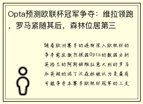 文章摘要:本篇文章将重点讨论荷兰主帅斯洛特对于欧冠赛事的看法,特别是与皇家马德里再次交锋的重要性。斯洛特表示,在欧冠的赛场上,每一场比赛都不能掉以轻心,尤其是在面对像皇家马德里这样的强队时。文章从四个方面对这一话题进行了详细阐述:一是斯洛特如何看待欧冠的竞争态势,二是他对于皇马的深刻理解与战术应对,三是他对球队整体备战和战术调整的看法,四是他对于每场比赛的重要性及不容轻视的态度。通过这些内容,文章...
