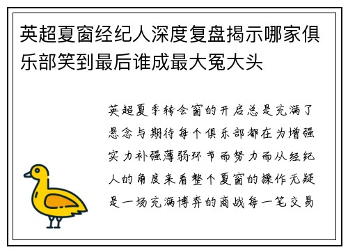 曼联作为全球最具影响力的足球俱乐部之一,其股权变动和背后的资本暗战无疑吸引了全球足球界、投资界以及资本市场的广泛关注。从曼联股东结构的复杂性到全球巨头对足球话语权的争夺,这一系列事件深刻揭示了足球产业与资本市场之间的紧密联系。本文将从四个方面,详细分析曼联股权迷局背后隐藏的资本暗战及全球巨头如何争夺足球话语权。具体内容将从资本力量的博弈、全球化背景下的足球产业化、曼联股东与管理层之间的权力斗争,以...